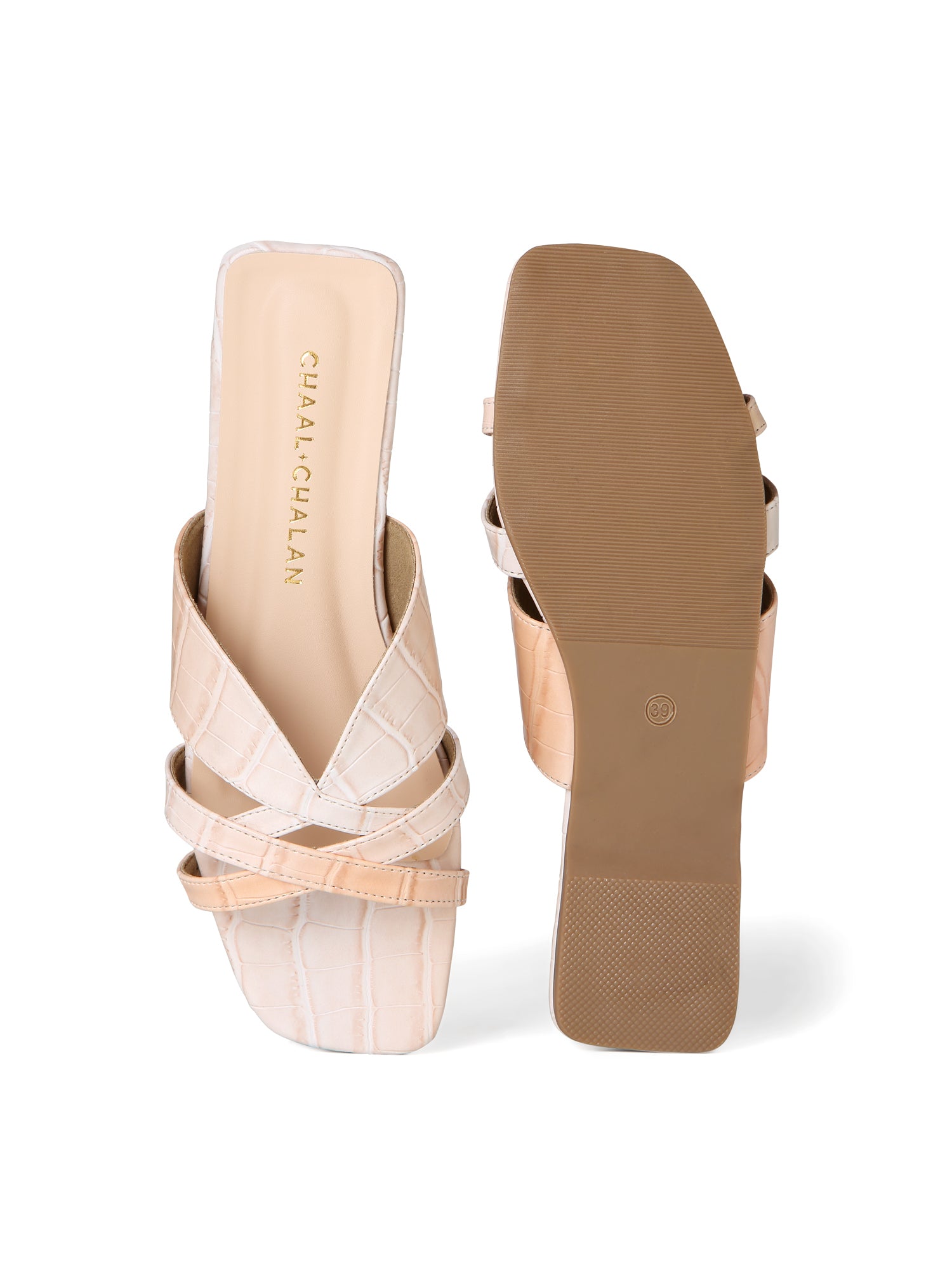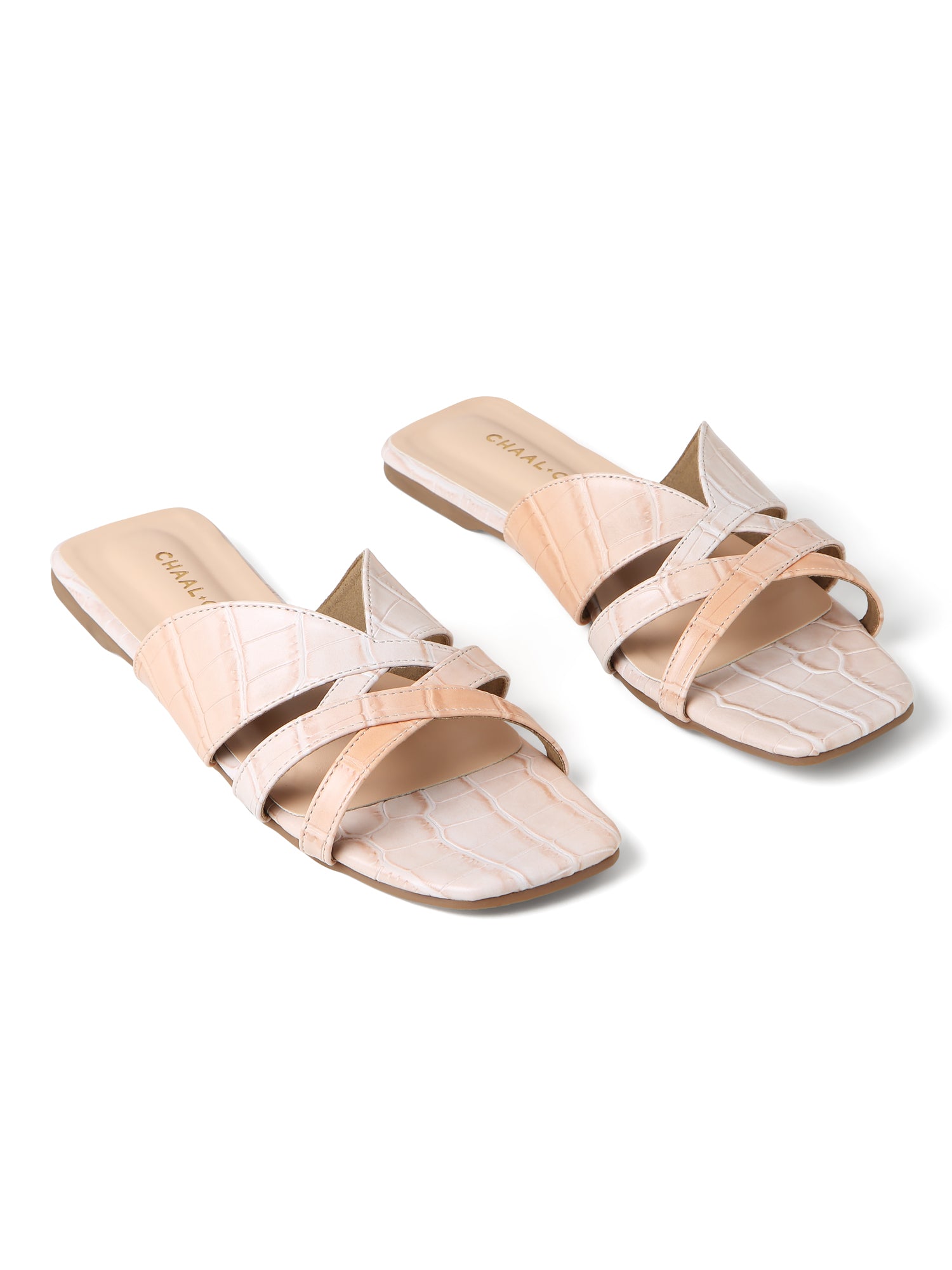 Step out in effortless style with these elegant women’s flat sandals. Designed with a chic cross-strap upper in a soft nude beige animal print shade, these slides offer a perfect balance of comfort and everyday elegance. The cushioned insole provides all-day comfort, while the open-toe slip-on design makes them easy to wear for casual outings, office wear, or relaxed occasions. Lightweight and versatile, these sandals pair beautifully with dresses, jeans, or ethnic wear for a polished yet relaxed look.