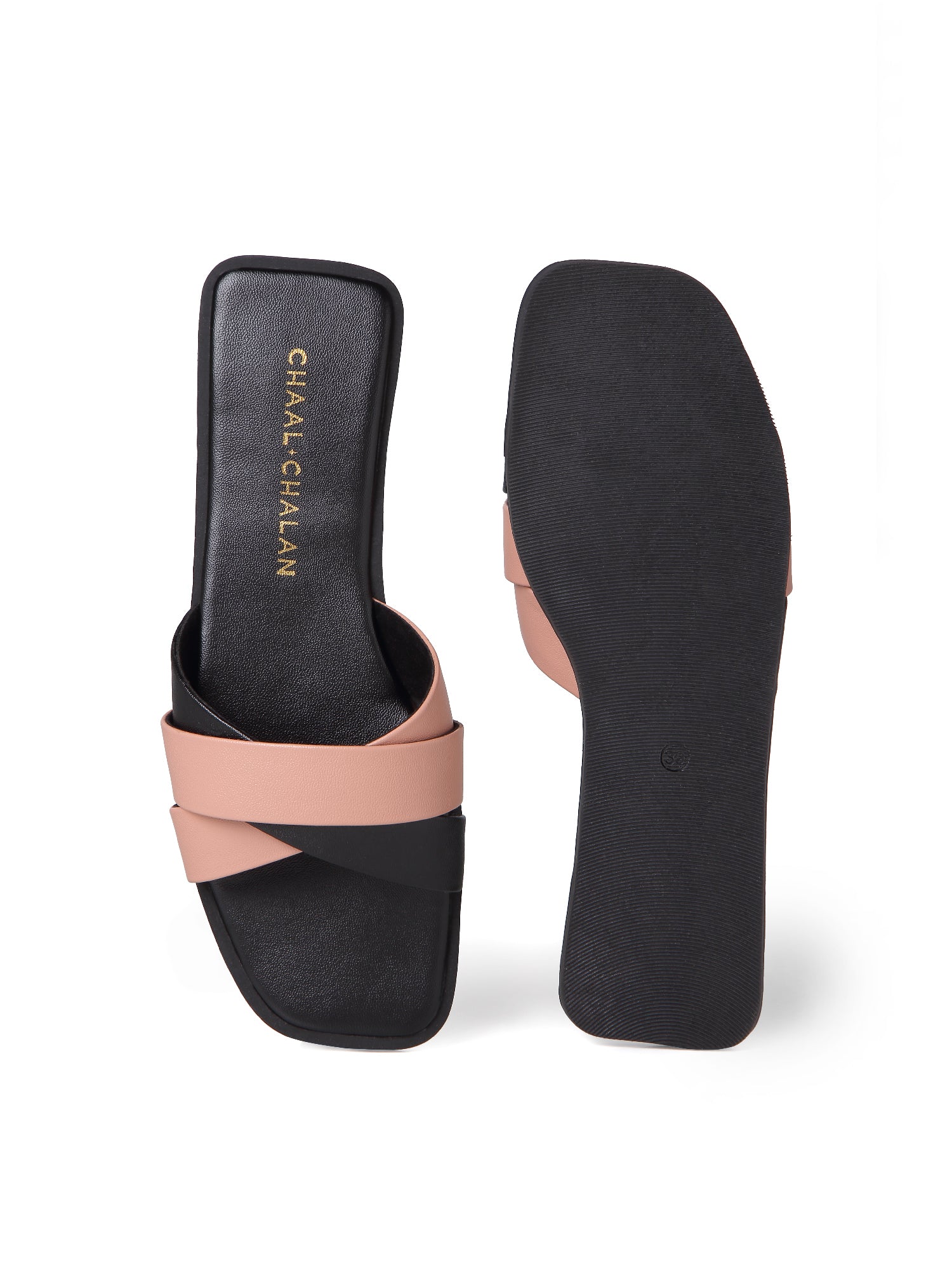 Slide into effortless sophistication with this dual-tone flat sandal — its soft blush-pink and deep black straps elegantly intersect, creating a chic wrap-around effect over the squared-toe footbed. With a lightly cushioned base for comfort and a low-profile sole perfect for all-day casual wear, this sandal is an ideal choice for pairing with flowing midi skirts, cropped denim or relaxed dresses.