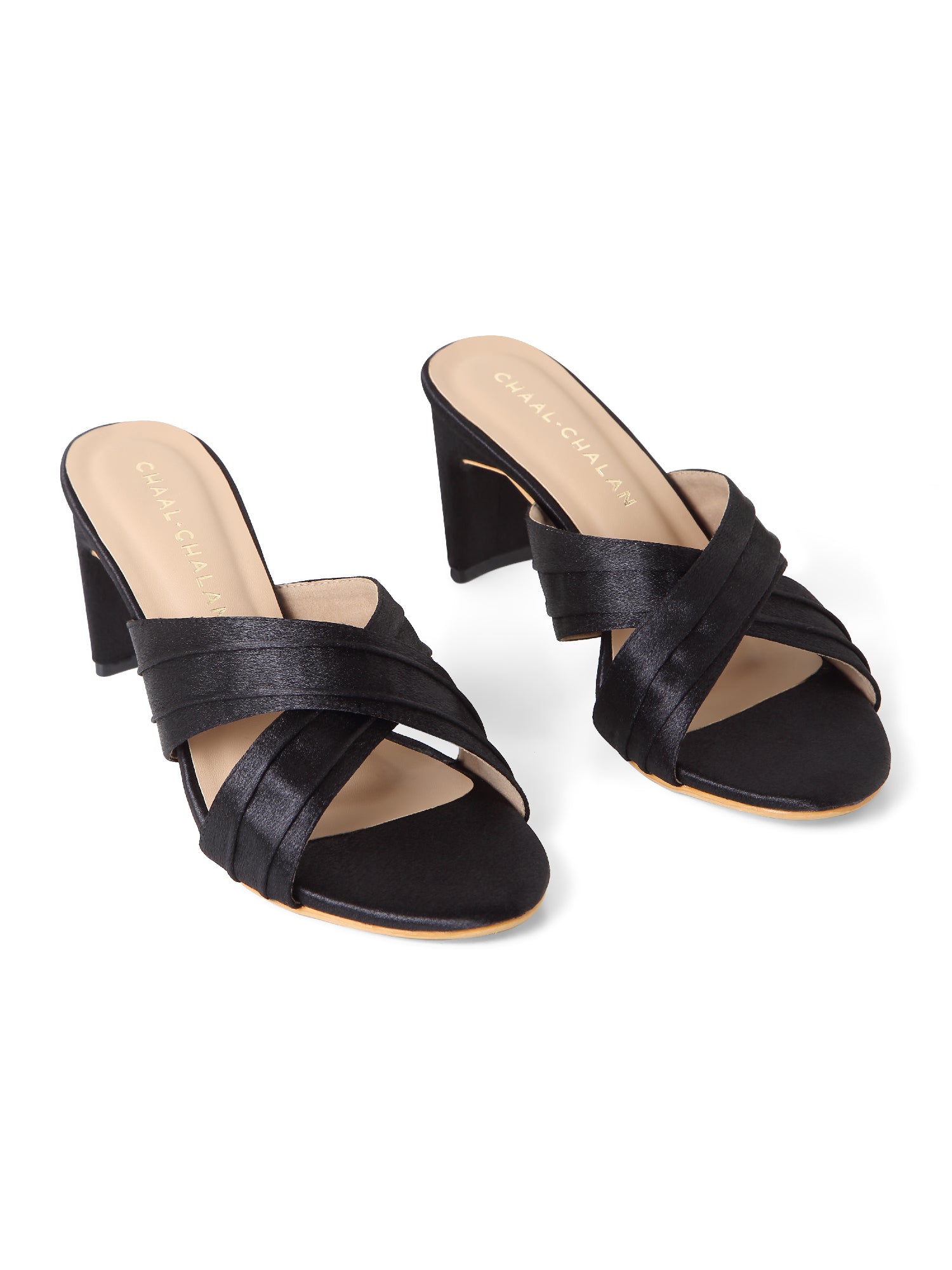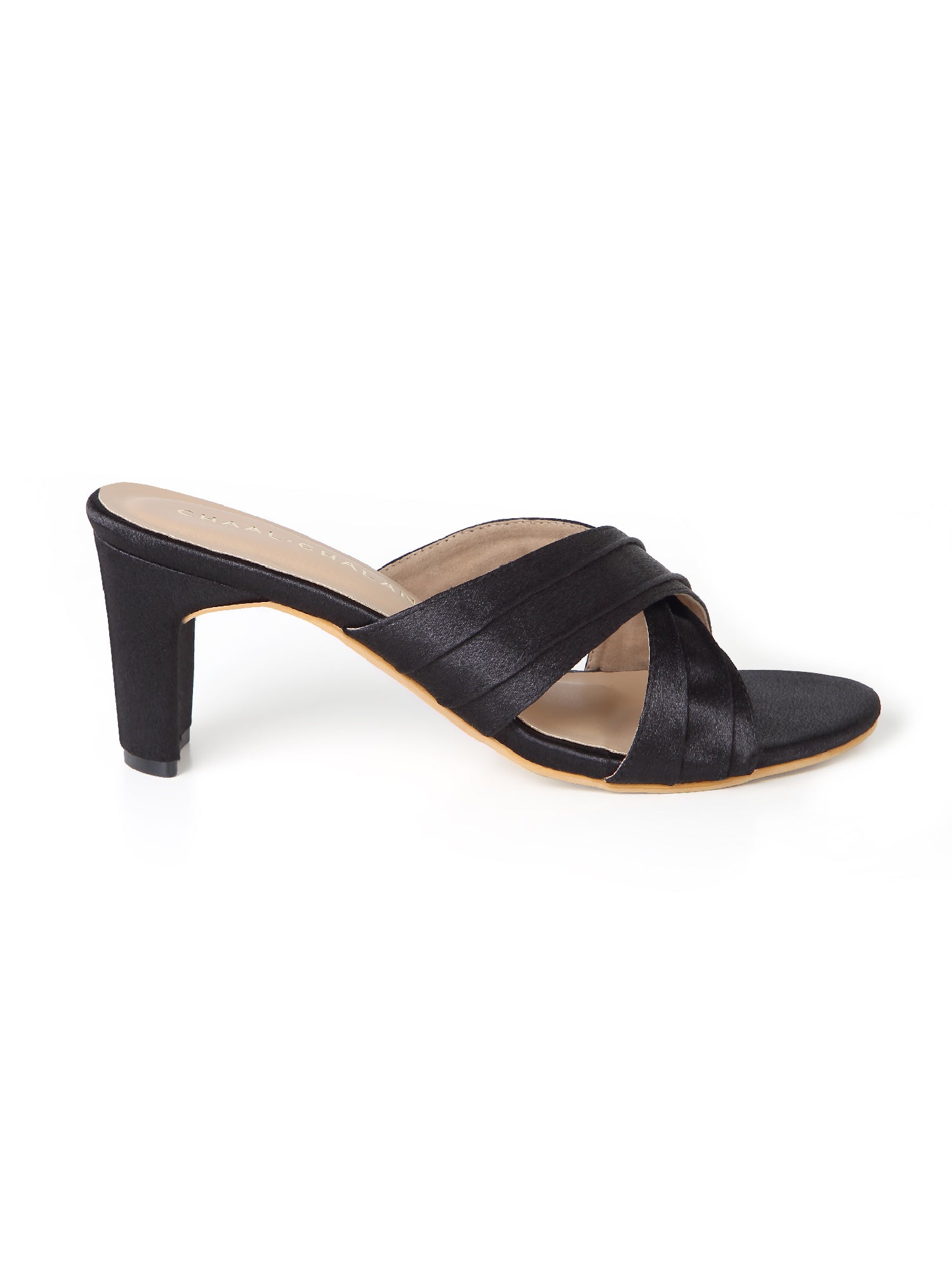 Elevate your look with simple black heels where sophistication meets modern simplicity. A glossy black cross strap crosses the foot, The mid-height block heel ensures both style and stability—perfect for semi-dressy occasions, office-to–evening wear or smart casual nights out. The open toe design offers easy slip-on access, while the carefully sculpted heel and sole bring together poise and comfort.