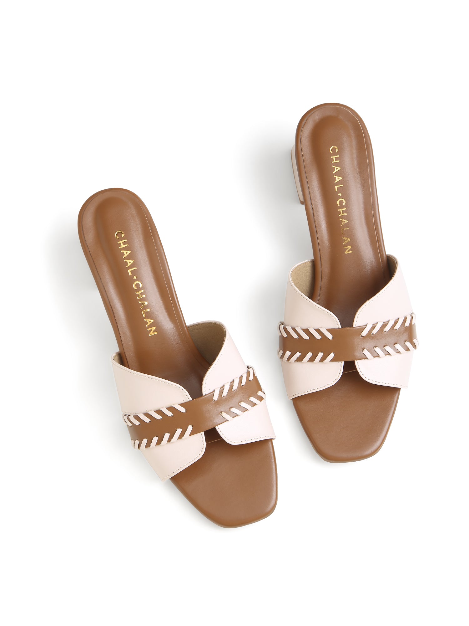 Step out in comfort and style with these elegant two-tone slip-on block heel sandals. Designed with a soft cushioned footbed, they provide all-day comfort while keeping your look effortlessly chic. The modern cut-out strap design adds a trendy touch, making them perfect for casual outings, daily wear, or relaxed weekends. Lightweight and easy to wear, these sandals pair beautifully with dresses, jeans, or ethnic wear.