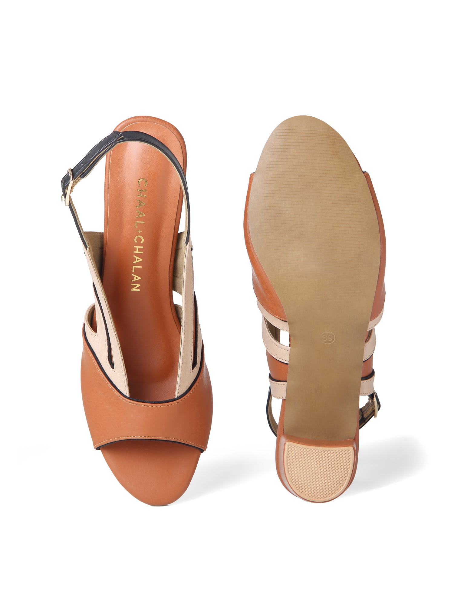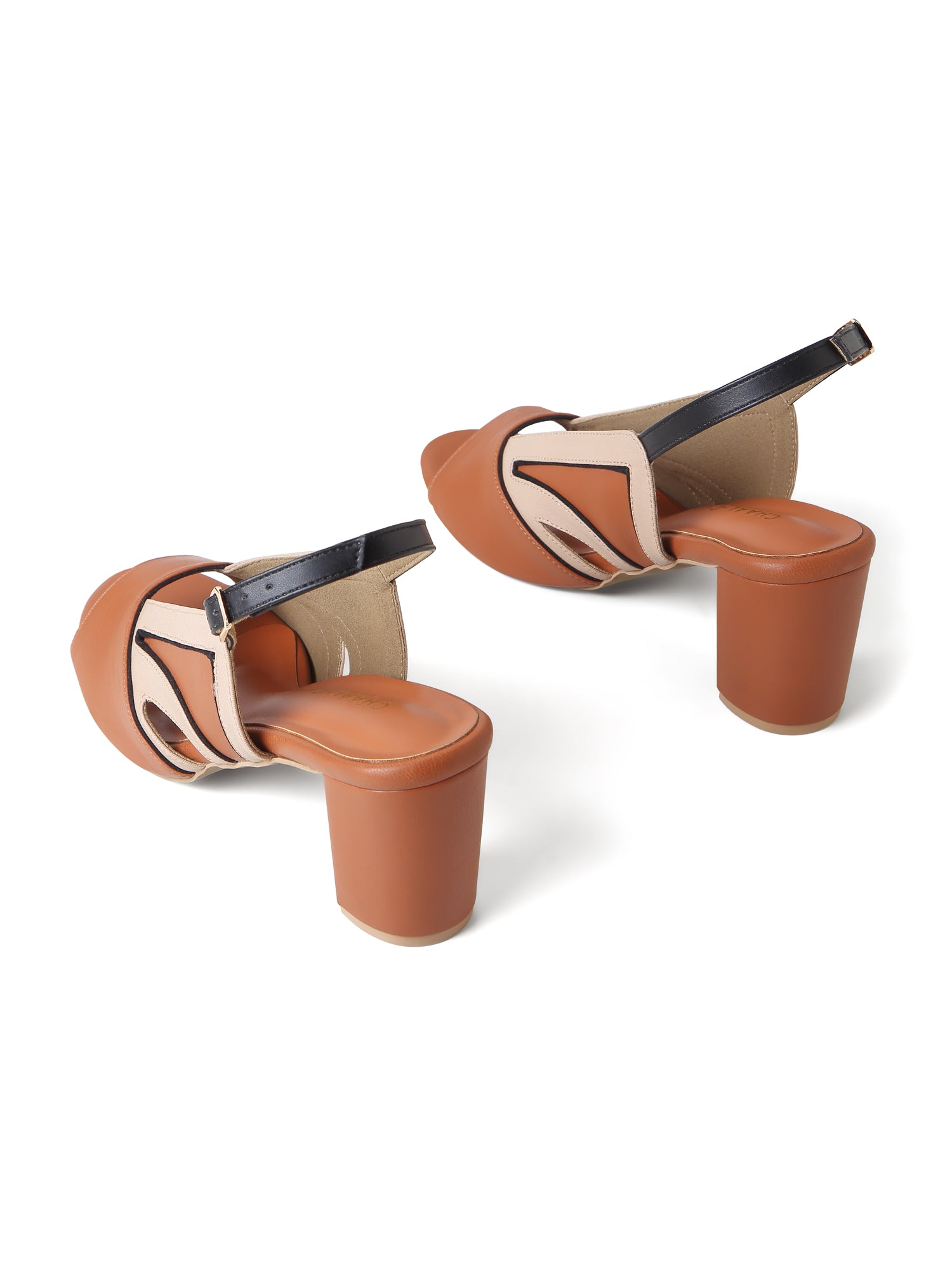 Elevate your everyday style with these classic two-tone slingback block heel sandals, designed for both comfort and sophistication. Featuring a rich tan and beige color combination, these sandals offer a timeless look that pairs effortlessly with dresses, skirts, or tailored trousers. The open-toe design adds breathability, while the sturdy block heel ensures stability and all-day comfort. Finished with an adjustable slingback strap for a secure fit, these sandals are perfect for work, casual outings, or evening wear.