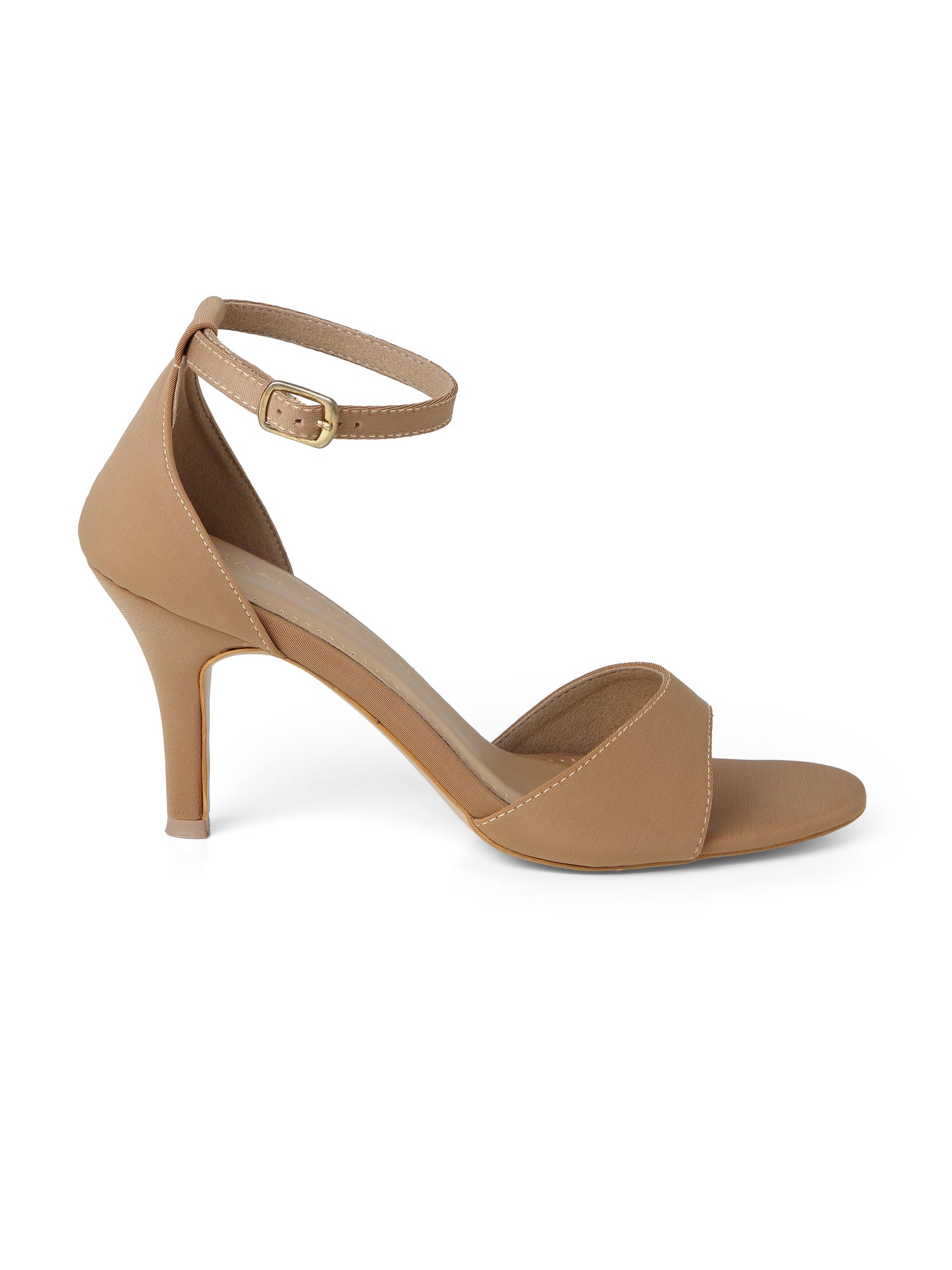 Designed with a sleek, minimalist silhouette, this pair features a graceful open-toe strap, a secure closed heel counter, and a delicate adjustable ankle strap for a perfectly customized fit.The subtle contrast stitching along the edges adds a touch of artisan craftsmanship to the smooth, matte finish. Set on a chic stiletto heel.