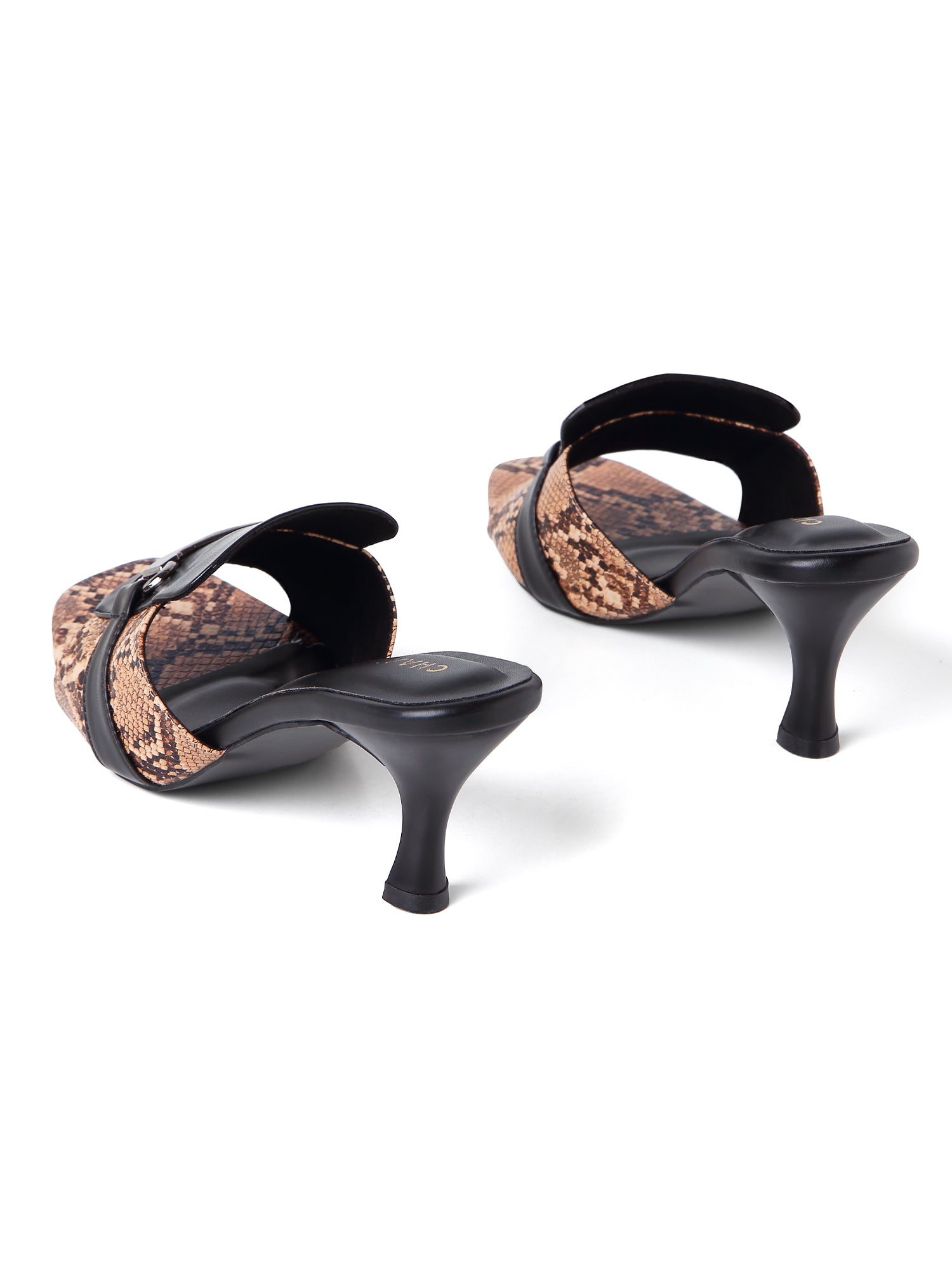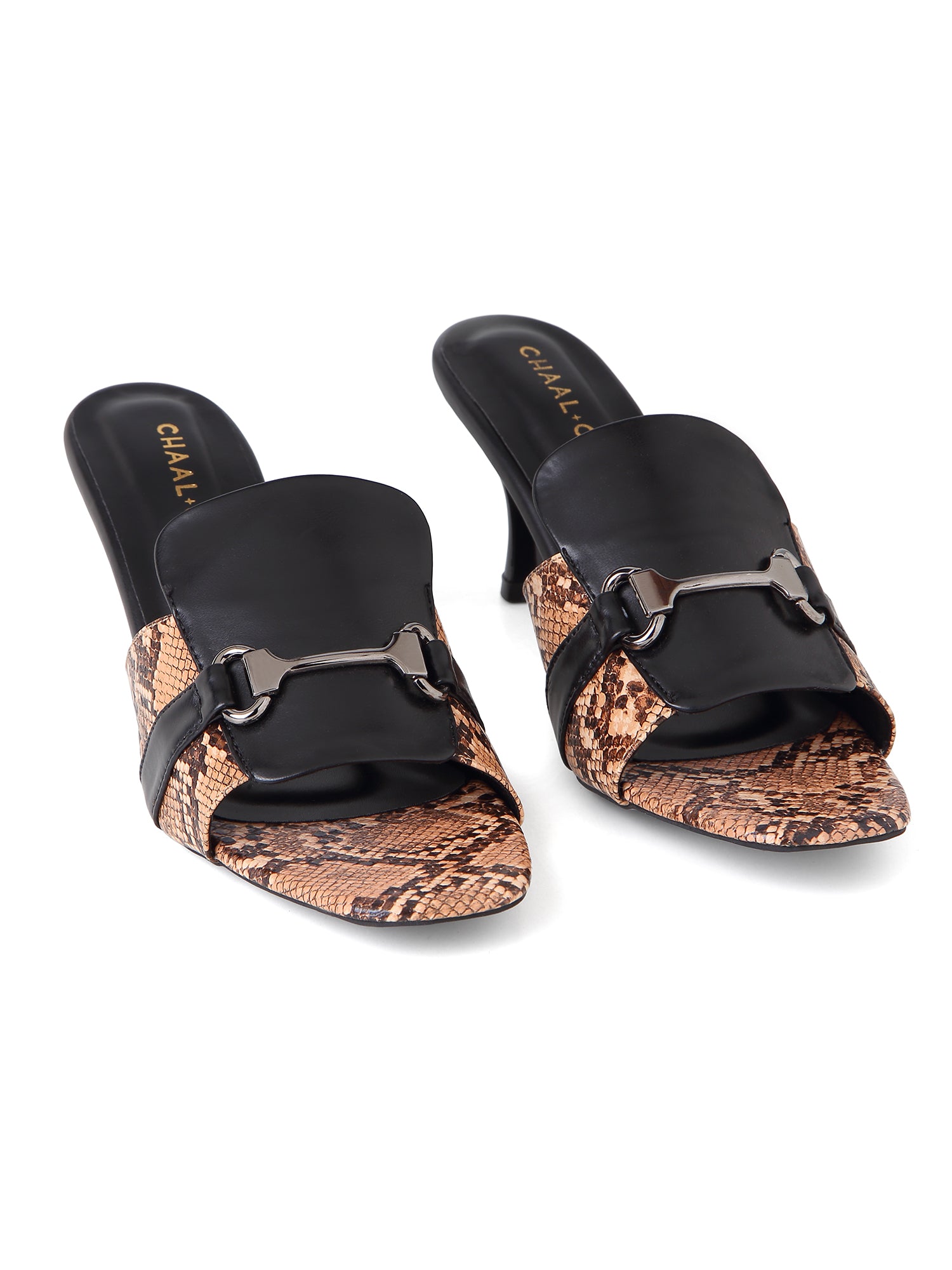 Unleash your wild side with these chic pencil heels that blend classic black with fierce animal print. The sharp silhouette elongates your frame, while the contrast of textures adds visual drama. A touch of embellishment on the strap brings in subtle sparkle, making them perfect for evening glam, cocktail events, or turning heads at dinner.