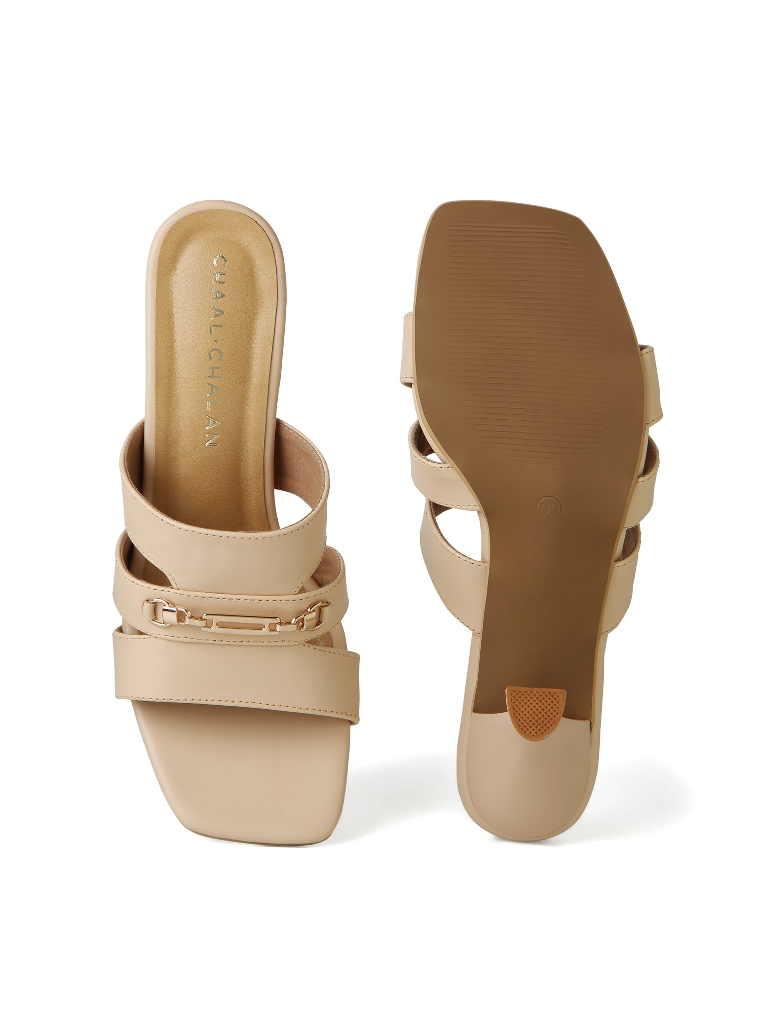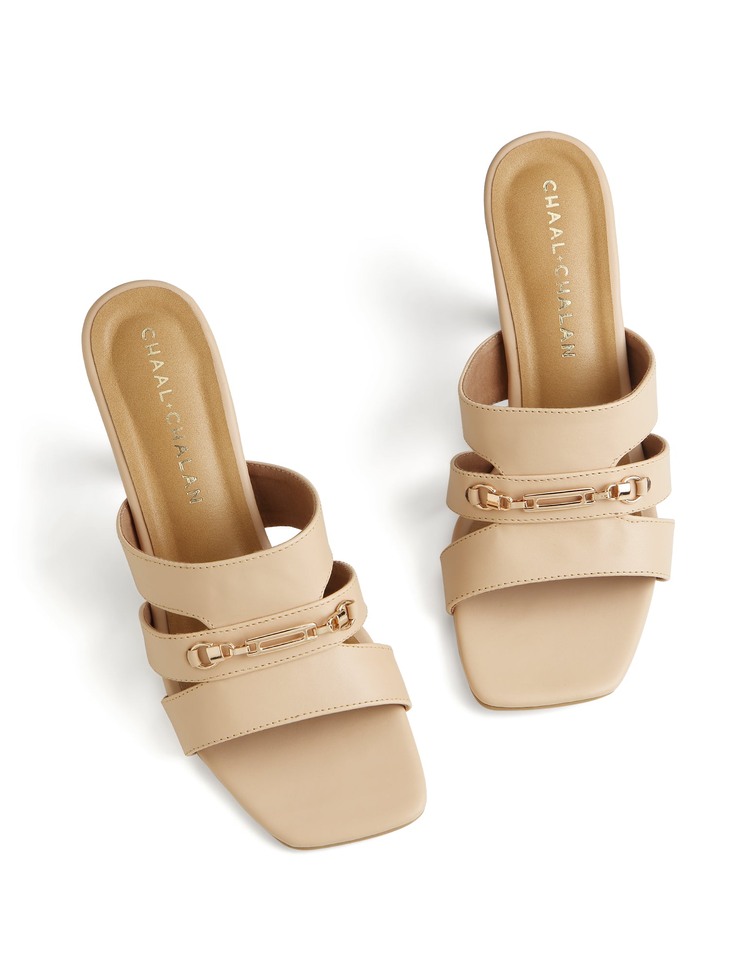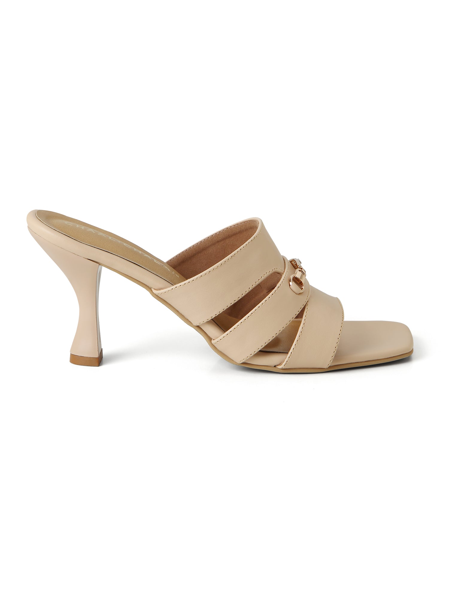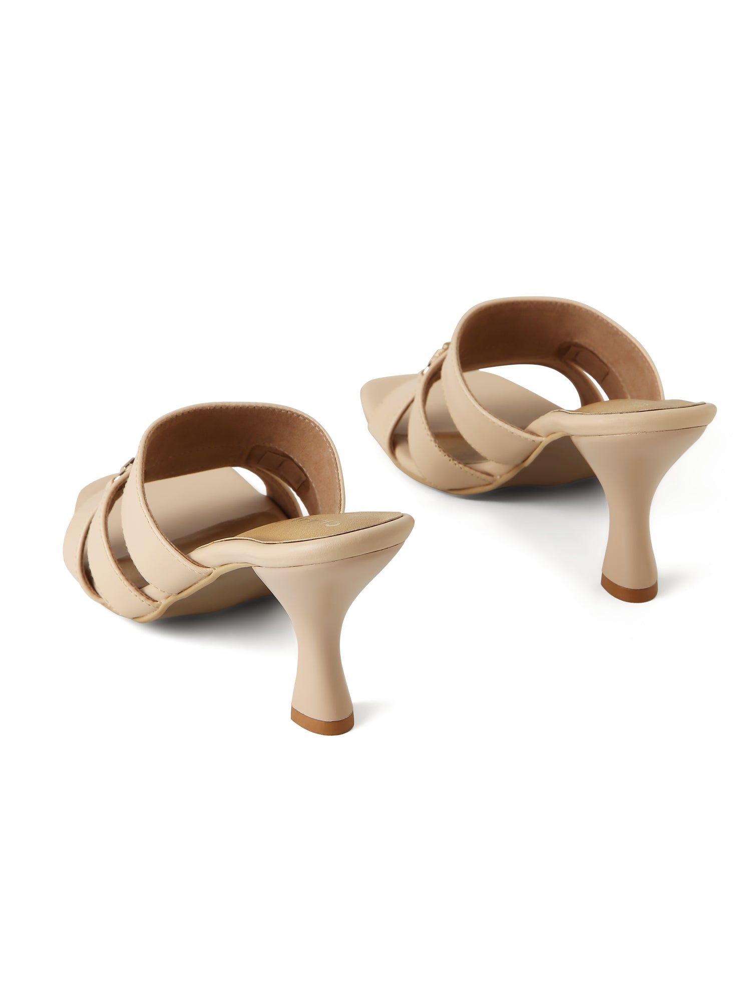 Designed with a broad strap adorned with delicate embellishments, these pencil heels offer a subtle sparkle with a neutral, versatile tone. The sleek silhouette adds sophistication, making them perfect for both everyday elegance and special occasions.