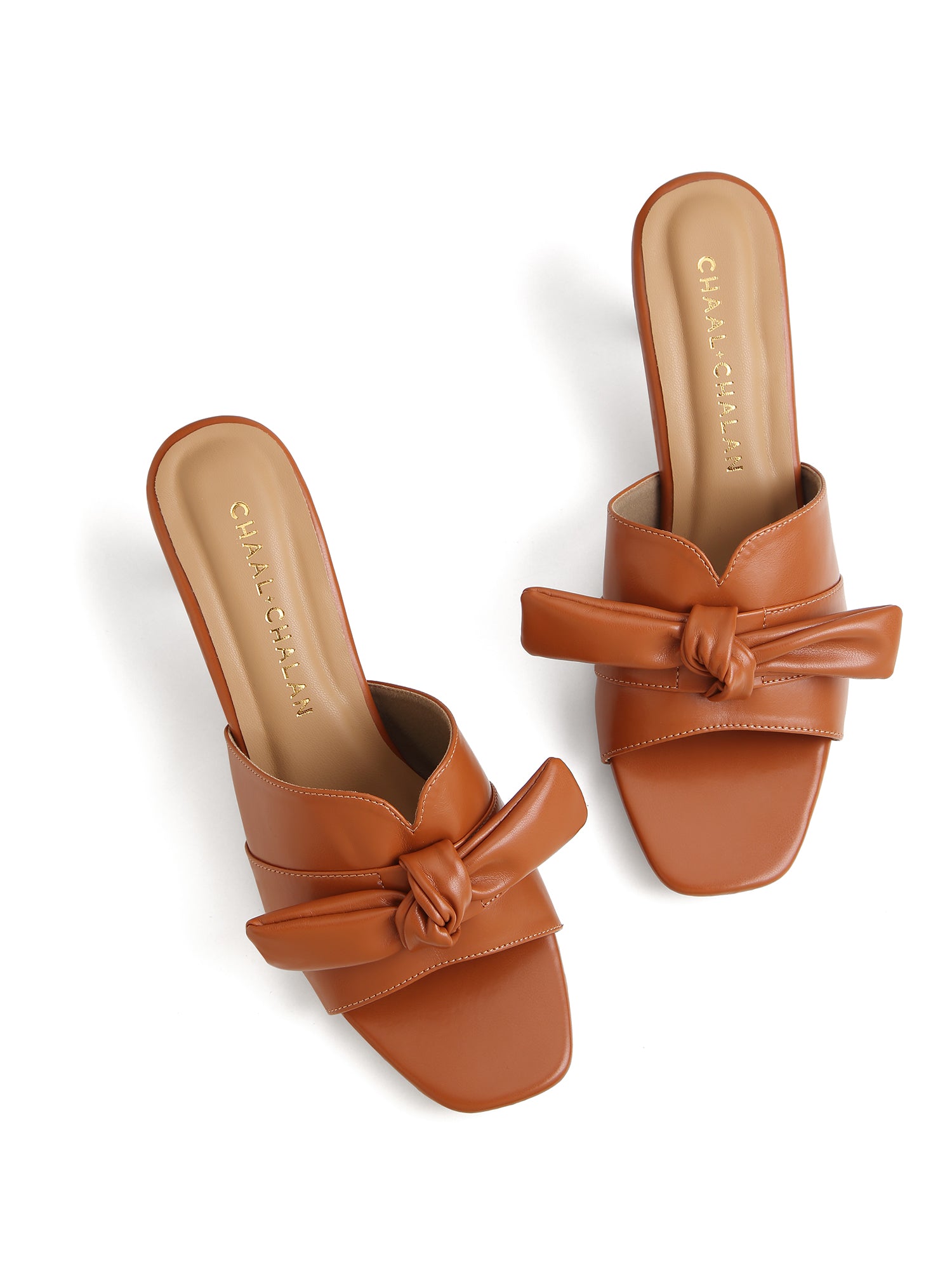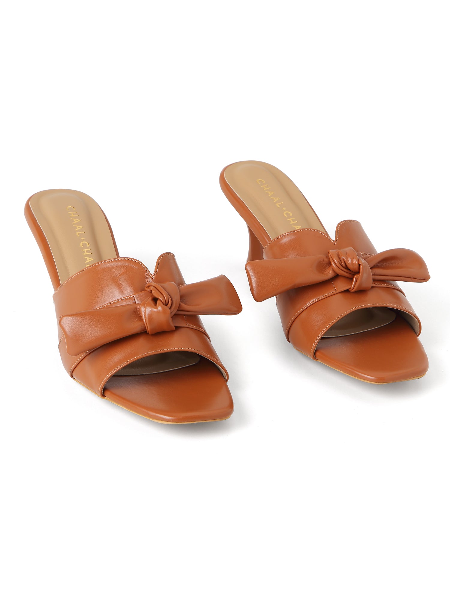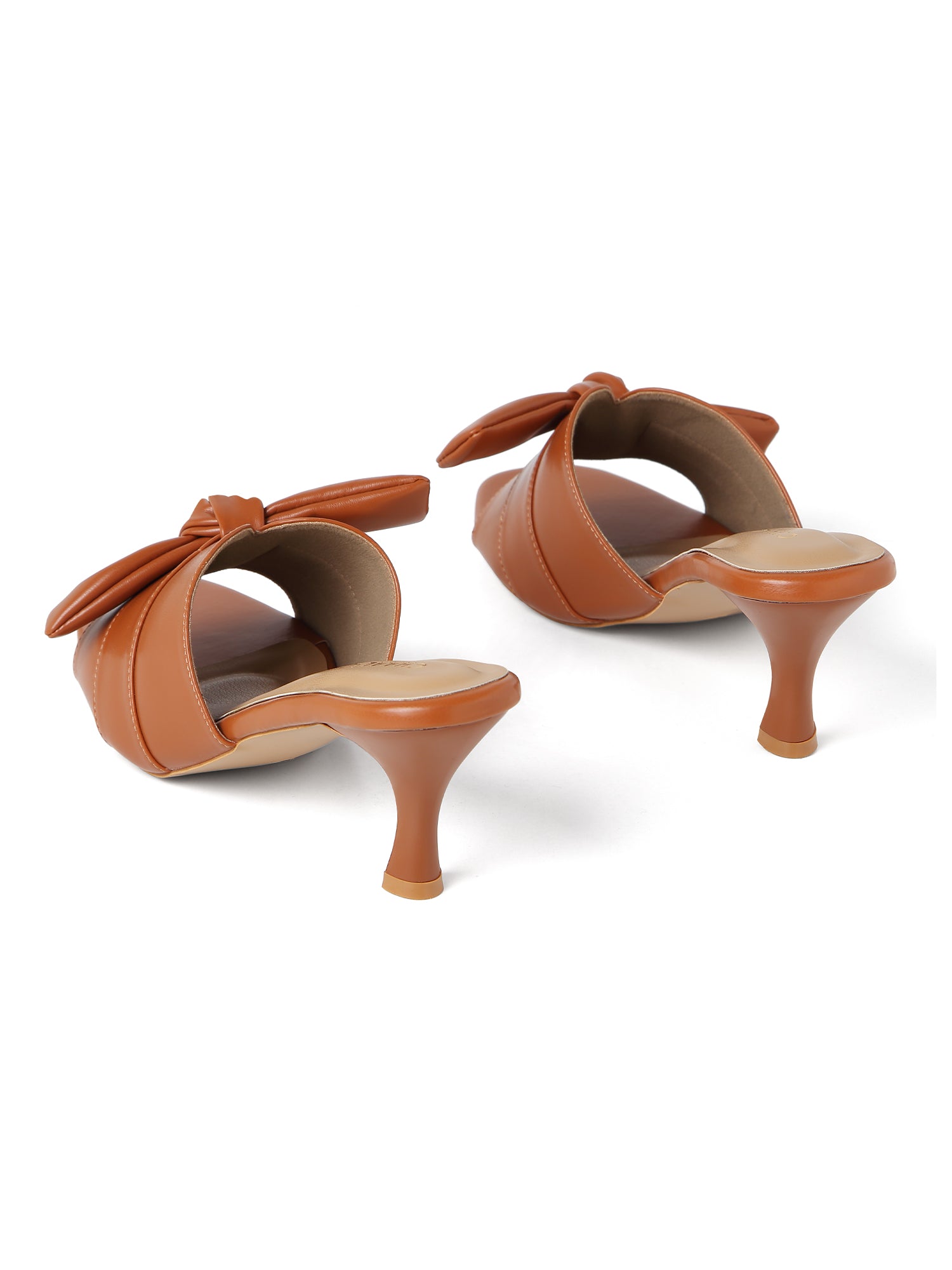 Subtle and sweet, these Chiku brown pencil heels feature a minimalist design accented with a soft bow on the front strap. The neutral tone makes them a versatile pick for both casual and semi-formal outfits, while the sleek heel adds just the right touch of elegance.