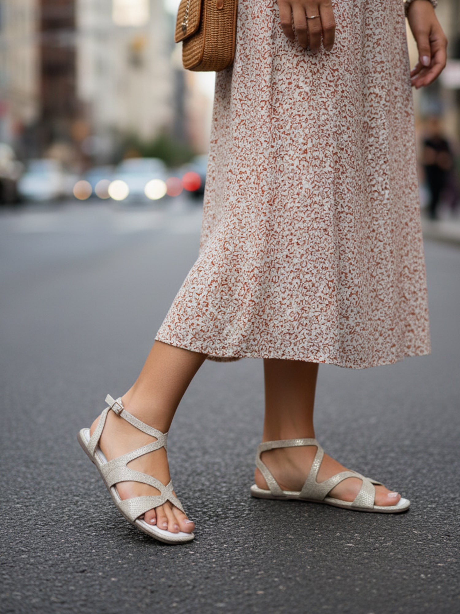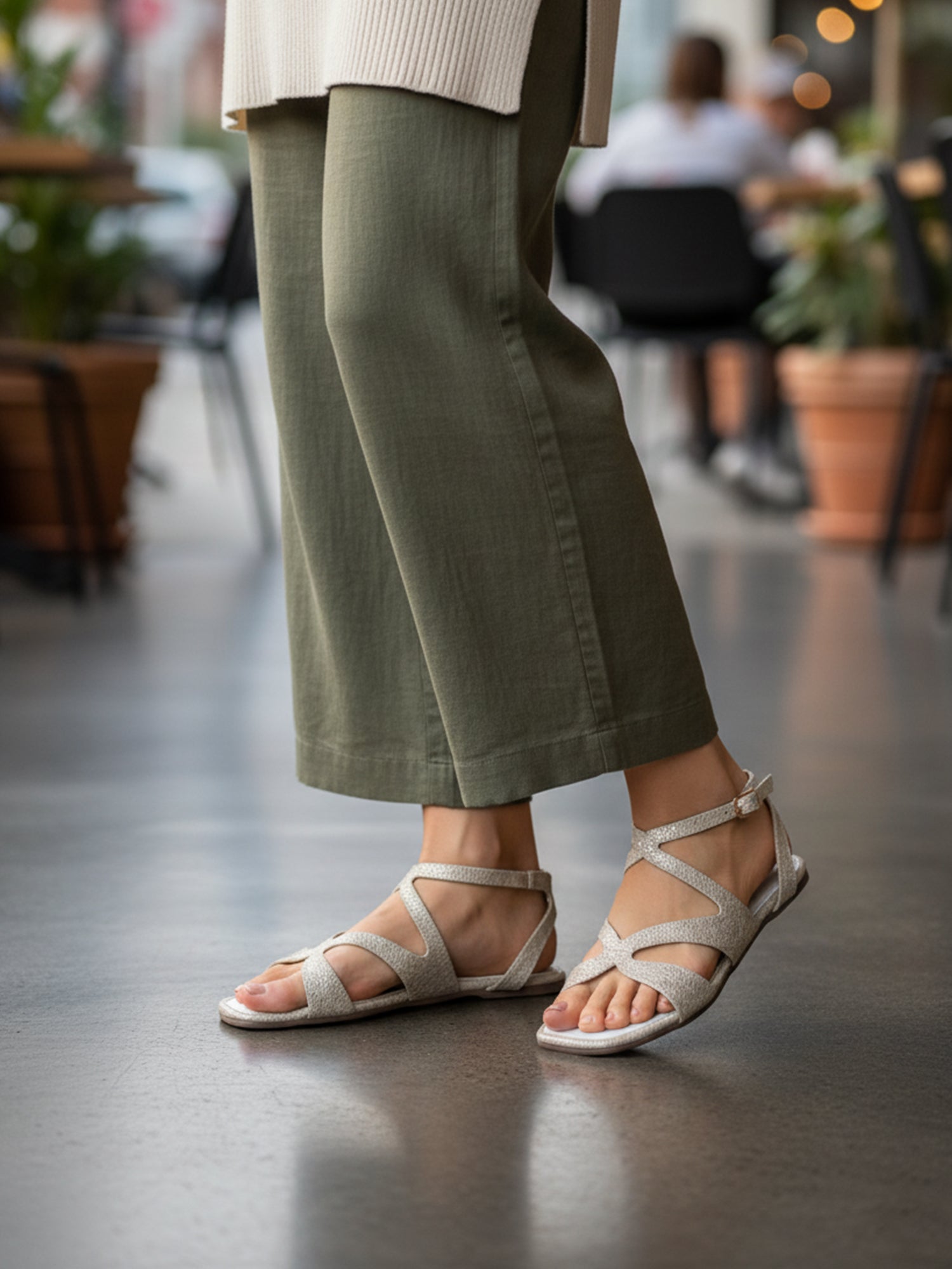 Step into refined comfort with this beautifully designed flat sandal that blends modern flair with everyday ease. The soft straps gracefully weave across the foot, forming a subtle but stylish cut-out pattern that sits gently above the instep and toe area. A minimalist square-toe foot-bed provides a contemporary silhouette, while the lightly cushioned sole ensures all-day wearability. Perfect for casual brunches, weekend strolls or easy-breezy meet-ups.