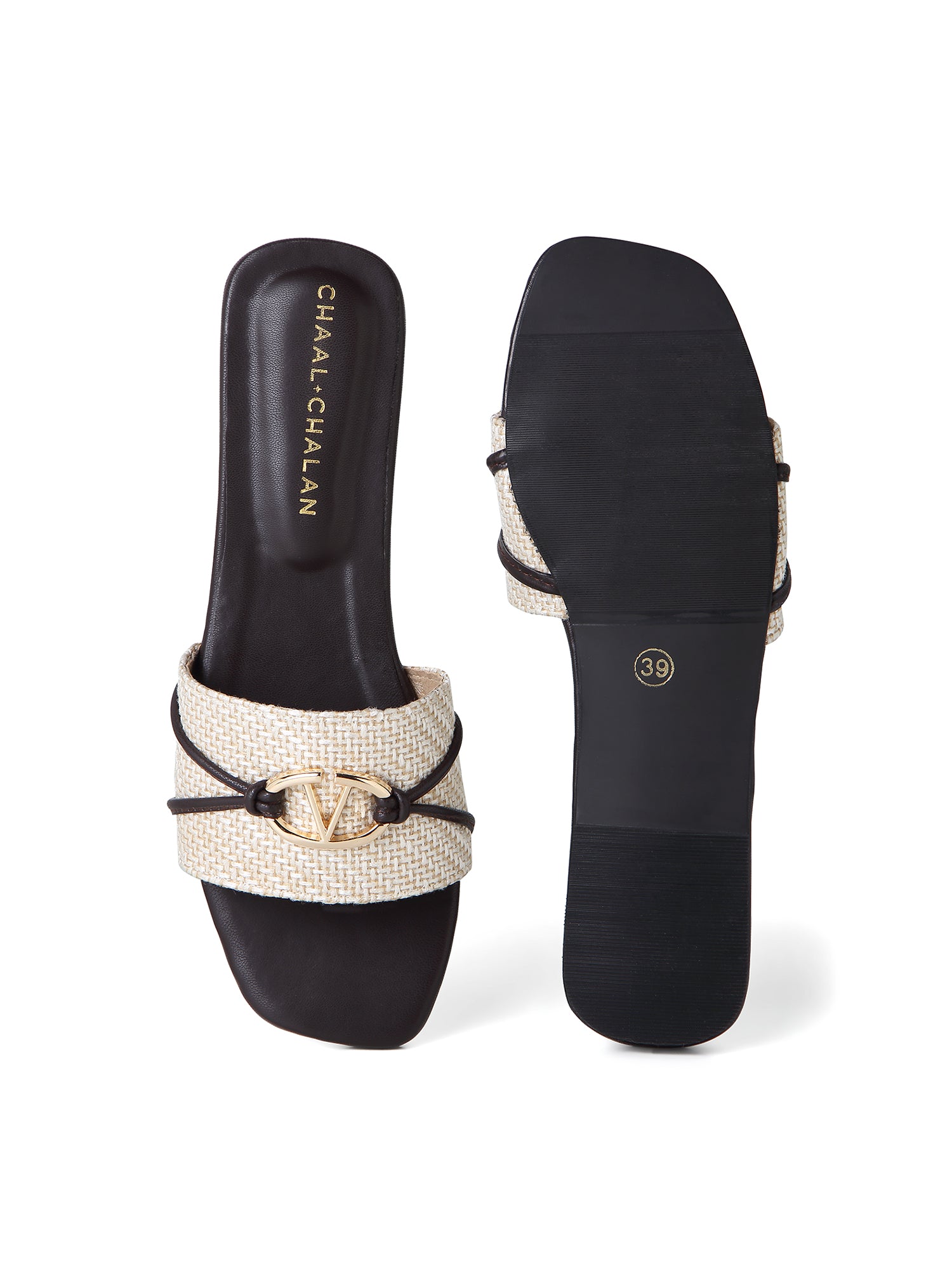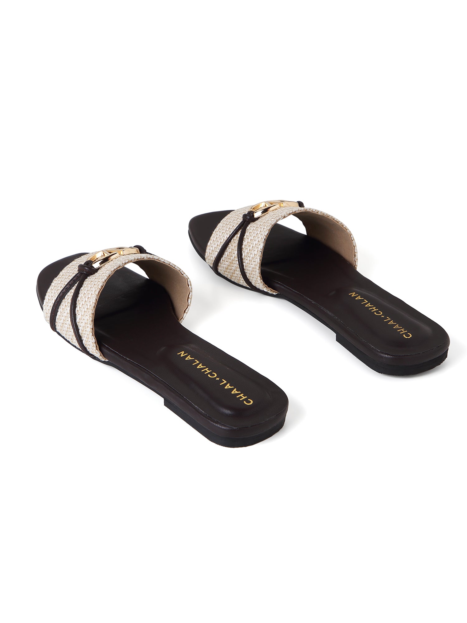 Elevate your everyday look with a touch of earthy charm in our Flats. Designed with a wide jute strap that brings a rustic, natural vibe, these flats are adorned with delicate embellishments that add just the right amount of sparkle. The open-toe design ensures breathability and comfort, making them ideal for casual outings, summer strolls, or festive gatherings.