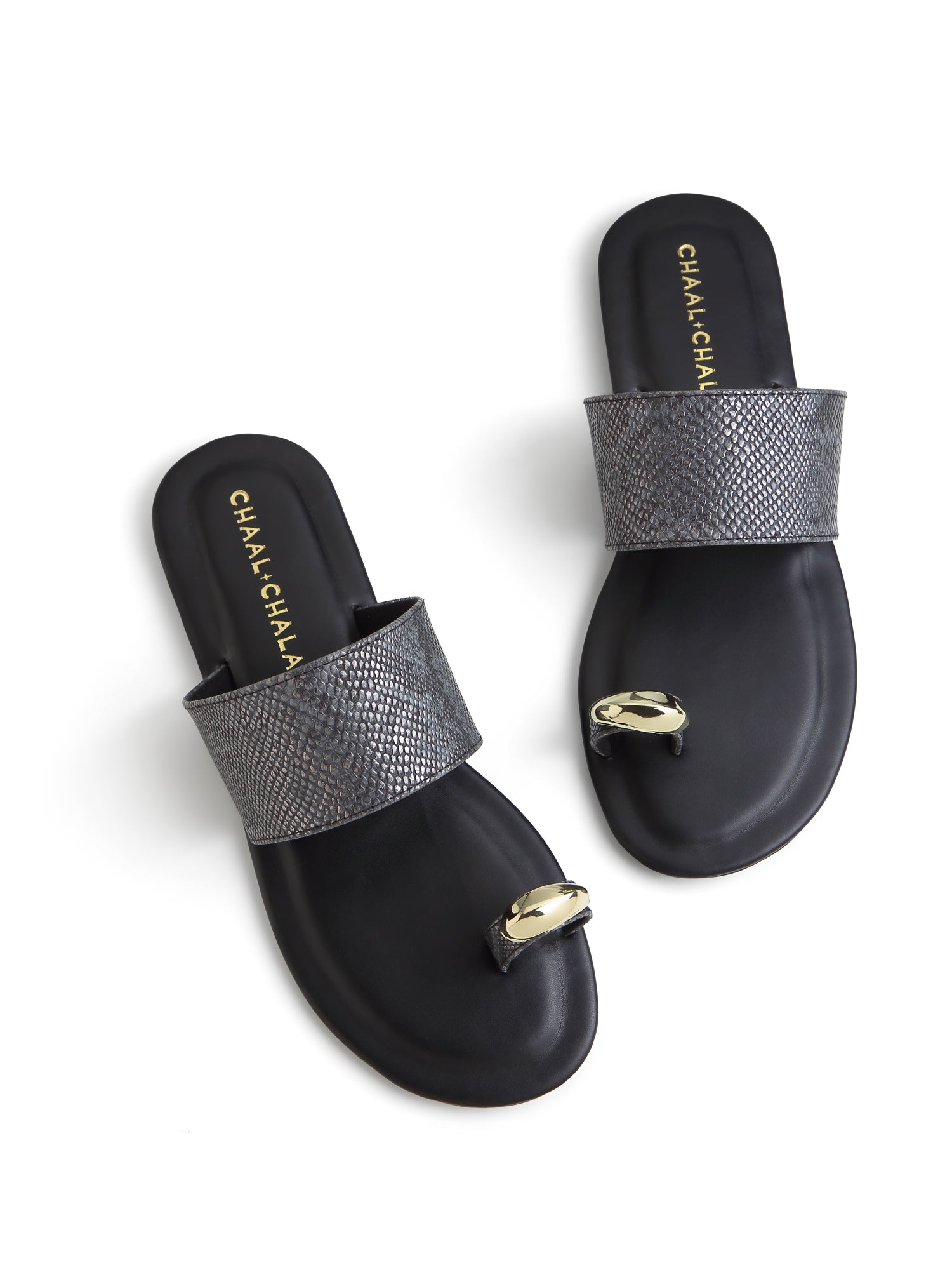 Slip into effortless style with these minimalist flat slide sandals — designed for comfort and everyday wear. The sandal features a single, textured upper strap that gently hugs the foot, paired with a sleek open-toe that keeps the design clean and modern. A subtle toe loop adds a unique touch, offering extra stability while maintaining a simple, contemporary look. The flat sole ensures comfortable wear for hours — ideal for casual outings, relaxed summer looks, or everyday errands.