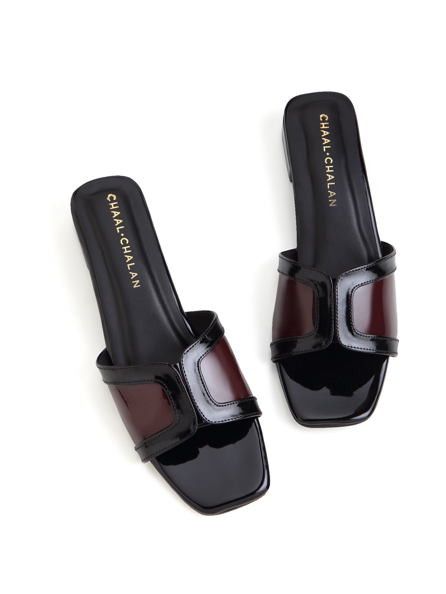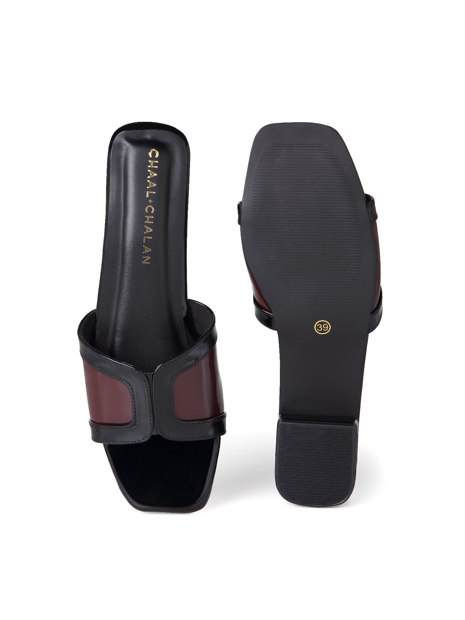 Make a statement with the Burgundy-Black Contrast Modern Slide. This slide elevates casual footwear by combining a rich burgundy tone on the upper strap with a polished black base and side accents. The strap is crafted with a sleek, minimalist form. With a softly contoured footbed and flat sole, this sandal brings together style and comfort for city outings, relaxed dinners or fashionable errands.